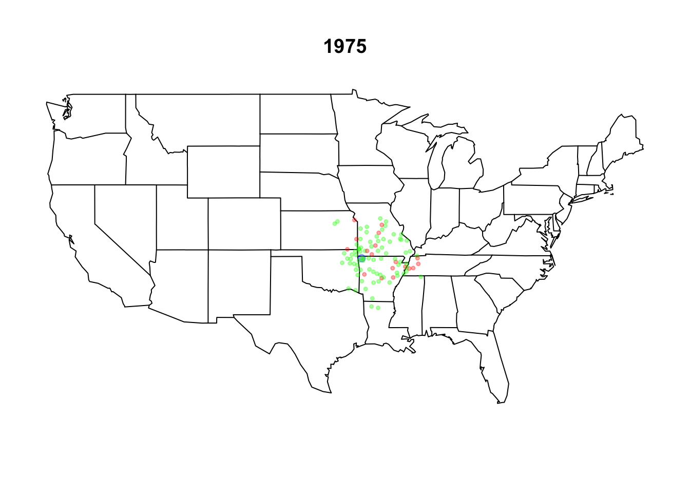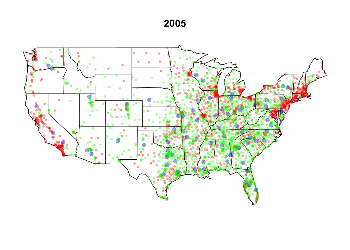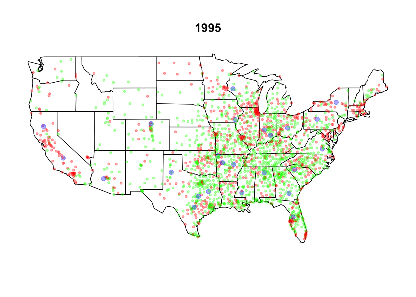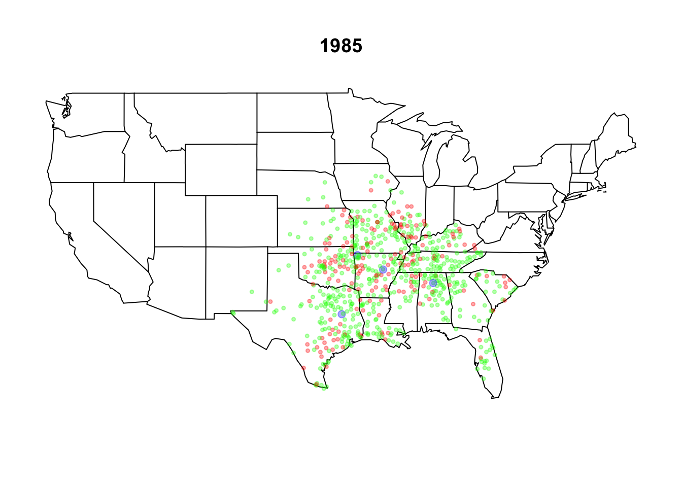 points(walmart$long, walmart$lat, col = walmart$storecolors,