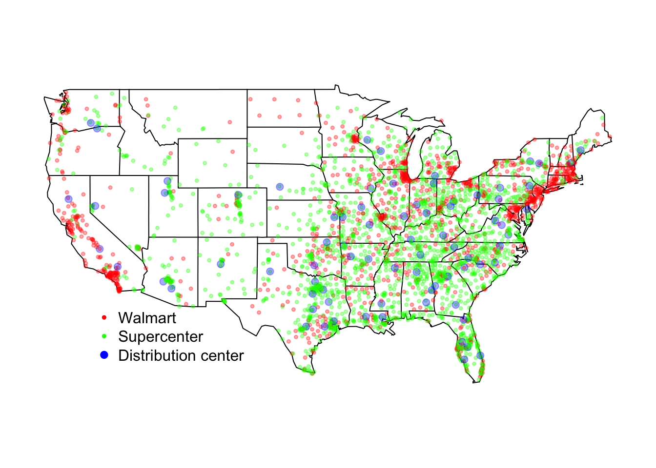 legend = c("Walmart", "Supercenter", "Distribution center"),