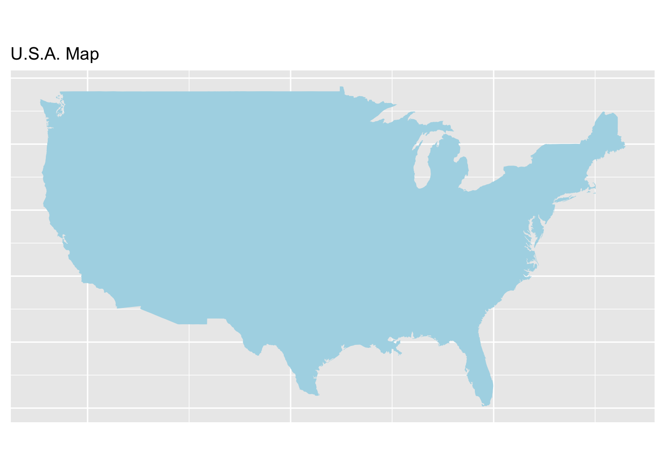 usa <- map_data('usa')- Next, we use geom_ploygon function to plot USA map.